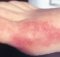 - Eritema marginal: de aparición infrecuente en un 5% de los casos, se presenta en brazos o tronco, pero no suele dar síntomas a nivel de rostro. Consiste de un rash evanescente, de color rosado, no pruriginoso (que no produce escozor), con bordes irregulares y piel de aspecto sano en el centro.